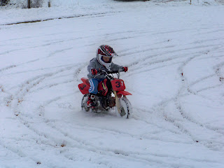 Hunter trying out the dirt bike... I know what he's going to want for his birthday.
